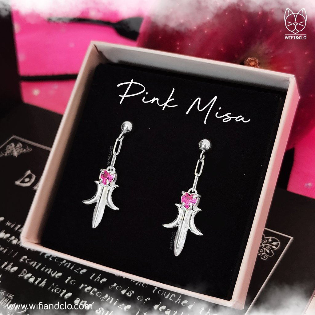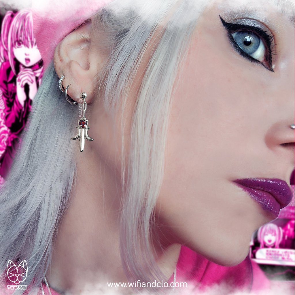 Pendientes de plata de ley 925, diseñados y elaborados a mano en mi taller, inspirados en el anime Death Note. Incluyen una circonita en forma de corazón, sello de la marca Wifi&Clo®, que aporta un toque elegante y kawaii.