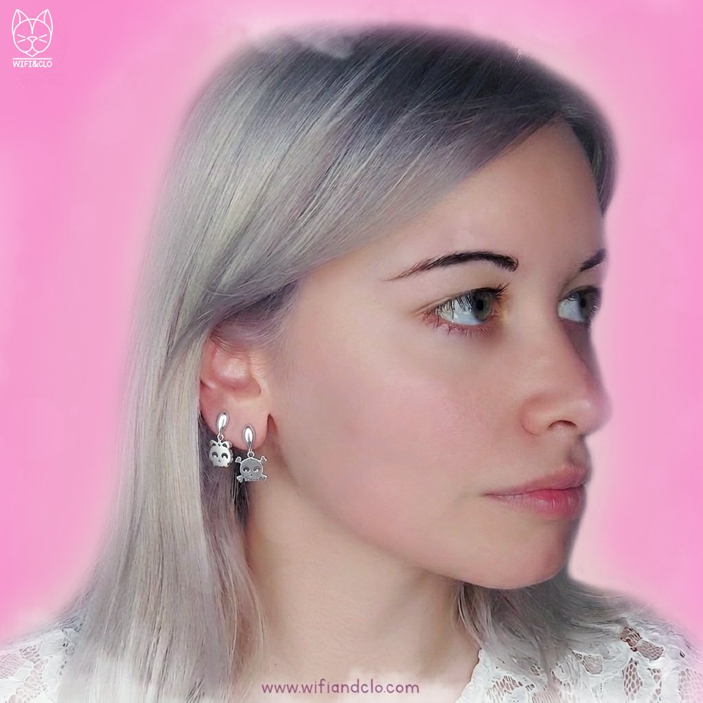 Kawaii Skull Pair Earrings | Sterling Silver 925 | Wifi&Clo®