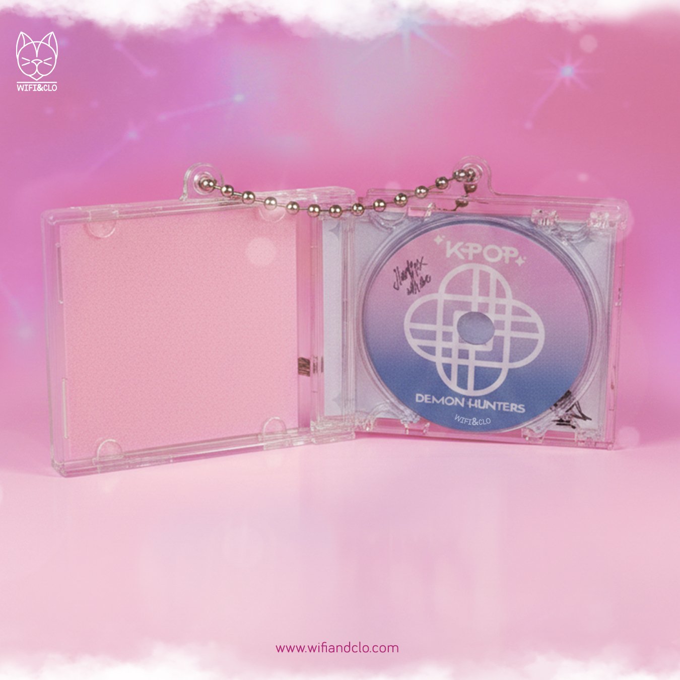 Llavero tipo CD Mini Huntrix, con su propio CD en el interior. Diseño 100% exclusivo de Wifi&Clo®, cuidadosamente impreso, cortado, ilustrado y ensamblado a mano para que encajen todas las piezas. Un regalo adorable y original, perfecto para coleccionar, decorar o llevar contigo a todas partes.