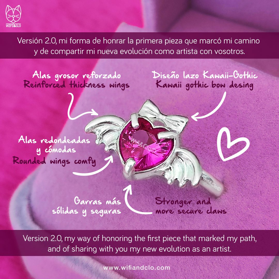 The prongs holding the stone are now more robust and secure, and the new central bow, true to the kawaii and original essence of the brand, replaces the old horns, adding a unique Kawaii-Gothic touch by Wifi&Clo®.
