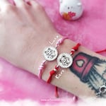 Sterling silver Maneki Neko engraved bracelet inspired by Luna Sailor Moon or Kero, featuring waxed cord with an adjustable macramé sliding knot for a comfortable fit.
