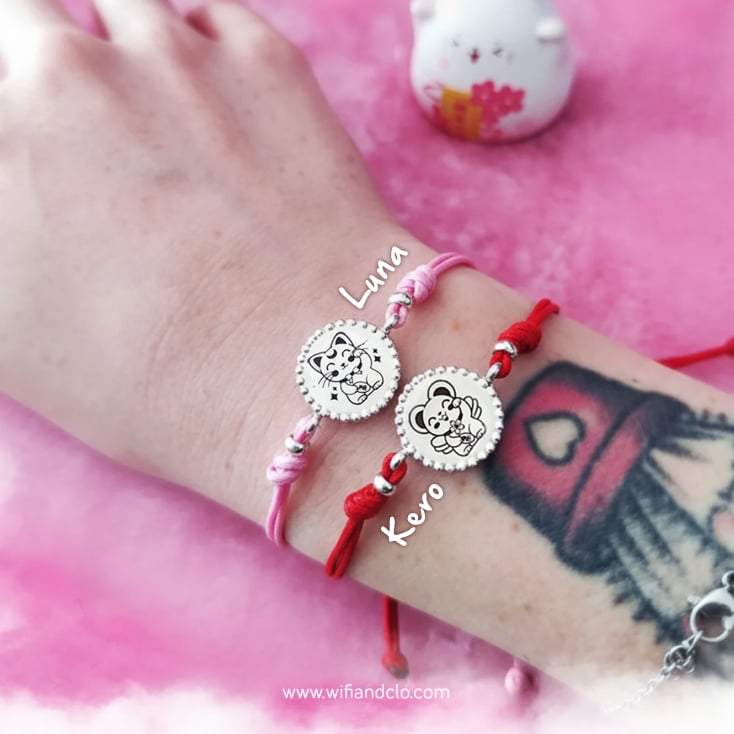 Pulsera con grabado de Maneki Neko, inspirado en Luna de Sailor Moon o Kero de Sakura, hecha en plata de ley 925, con cuerda encerada y nudo corredizo de macramé para un ajuste cómodo.