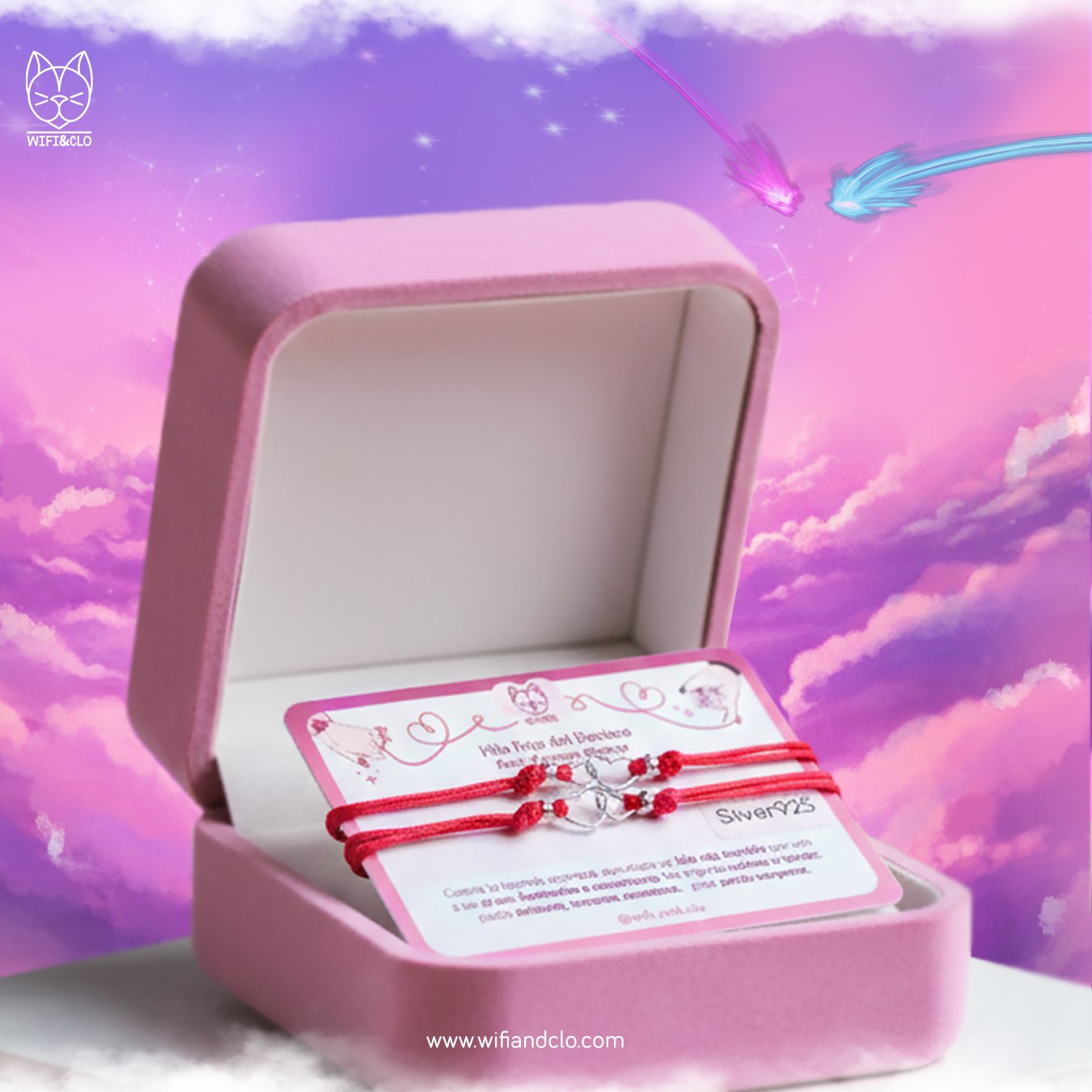 Inspired by the Japanese red thread of fate legend, an invisible thread connecting two destined souls. It may twist, stretch, or tangle, but it will never break until the destined moment arrives.