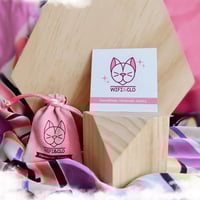 Bolsa de ante rosa con el logo de Wifi&Clo, ideal para portar joyas cuando vas de viaje.
